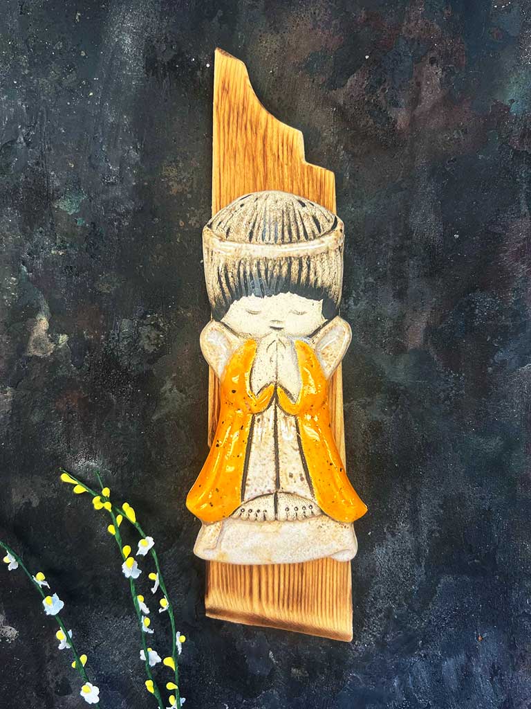 Größe 17 cm. (Tonengel ohne Holzbrett)